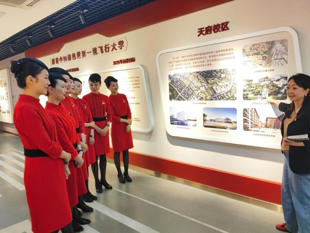 上午10点左右,四川航空企业文化部副部长张忠导、客舱服务部党群工作室主任张思、乘务五分部党总支副书记李佳和乘务员代表一行12人受邀来到公司,受到马公司党委热情接待。刘英亲自为他们讲解公司的发展历史、校园文化和大学精神。此次前来的川航乘务员都是公司毕业生,她们为母校近年来取得的发展成就感到格外振奋和自豪。